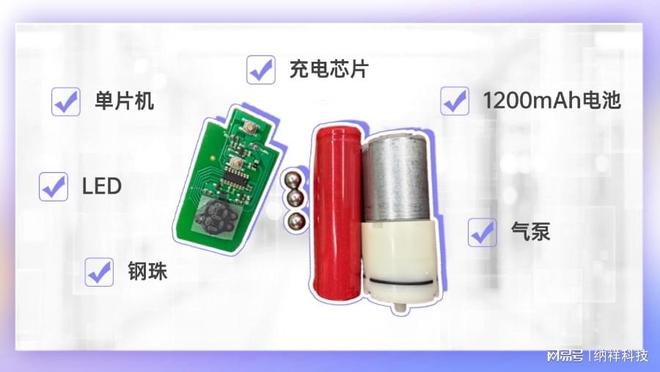方案集成单片机、充电芯片、气泵、1200mAh电池、LED、钢珠等关键组件,实现60Kpa持续恒定负压,支持支持0-9档循环切换,后端配备双按键(长按开关机+短按调档)及OLED屏显,操作直观。