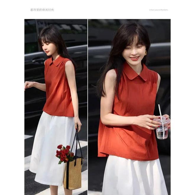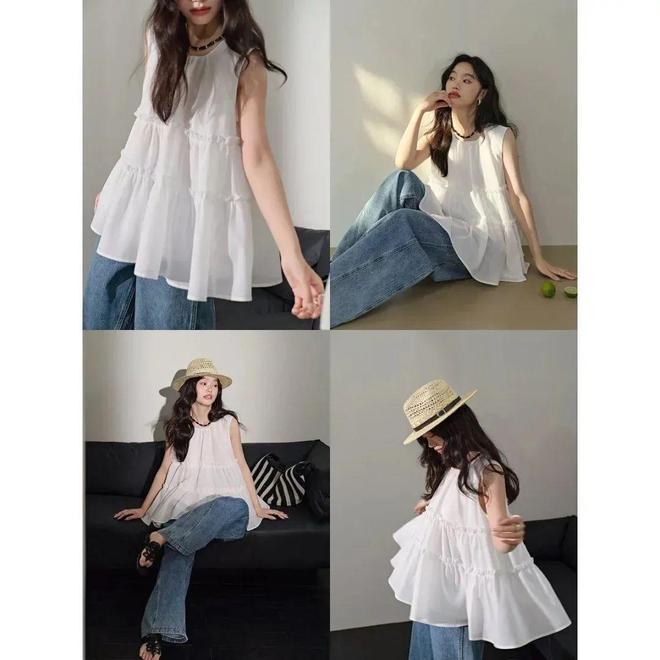 解锁高阶穿法,将轻薄的娃娃衫作为内搭。外罩一条简约吊带连衣裙,娃娃衫的袖口与领口巧妙外露,层次立现;或穿在背带裤/背带裙内,瞬间注入甜美书卷气。